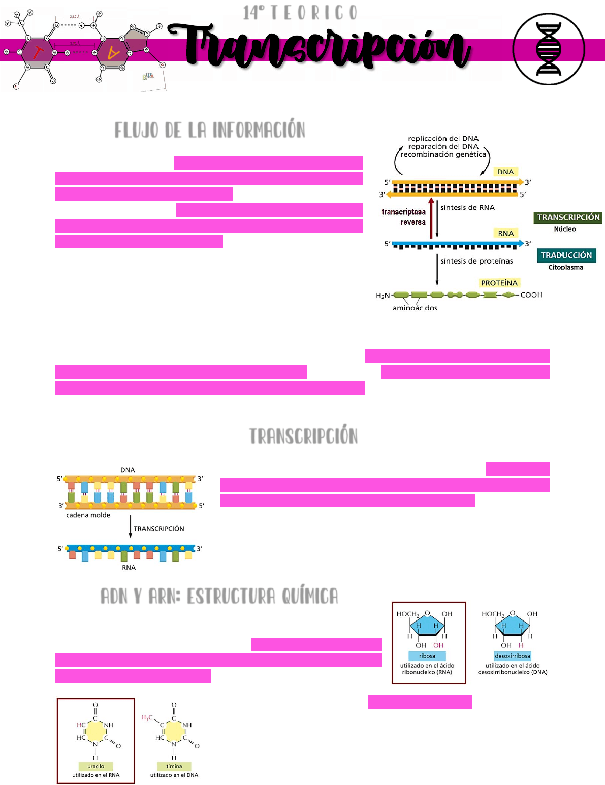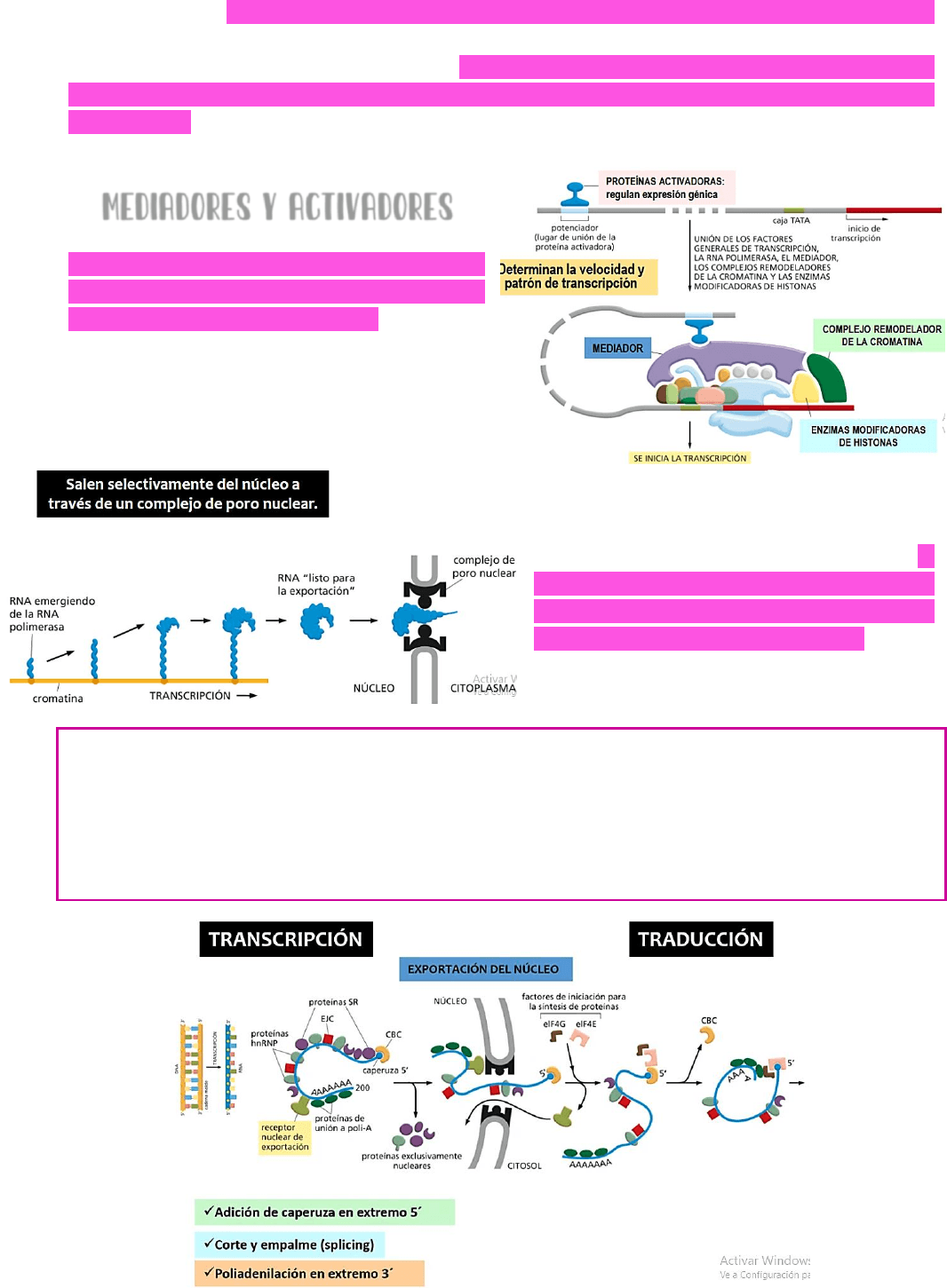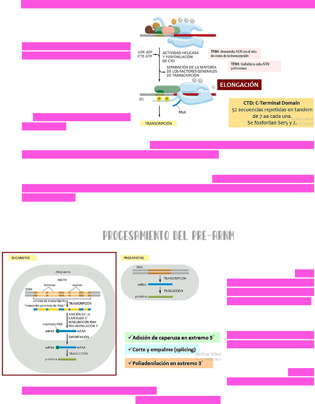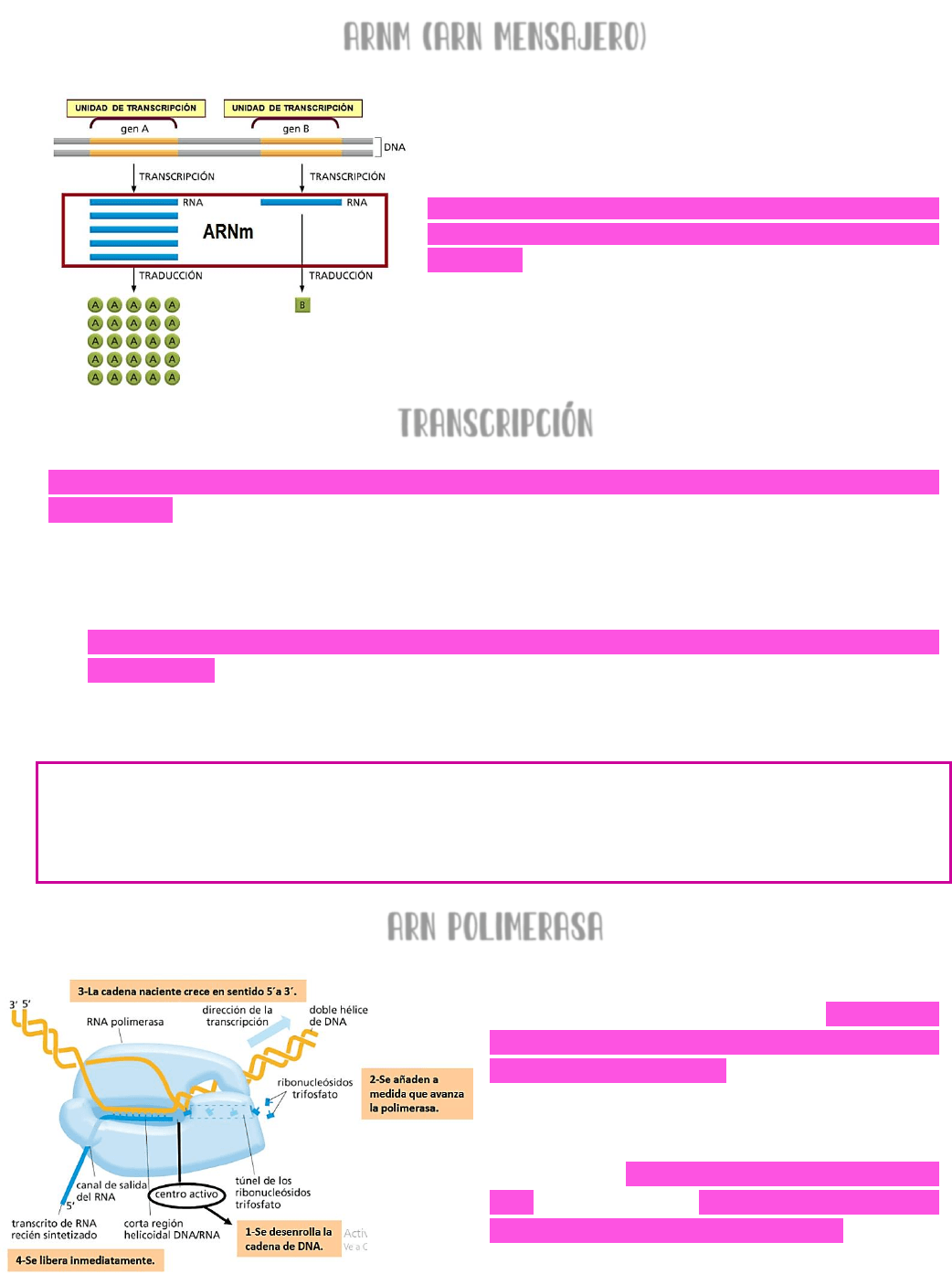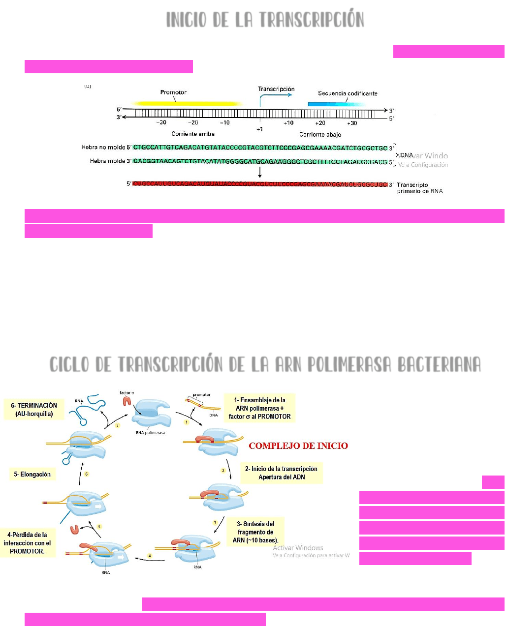 transcripción y la zona del