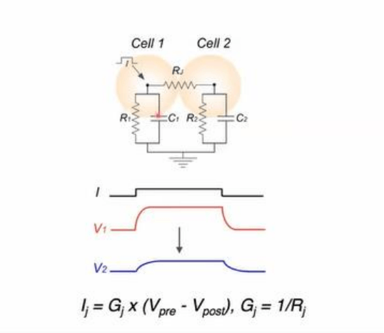 celula excitable o no, donde la informacion se transmite de una a otra con gran presicion espacial