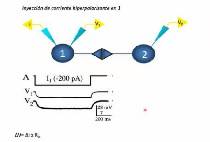 hacia el medio extracelular y muy poca corriente va a atravesar la segunda neurona para modificar