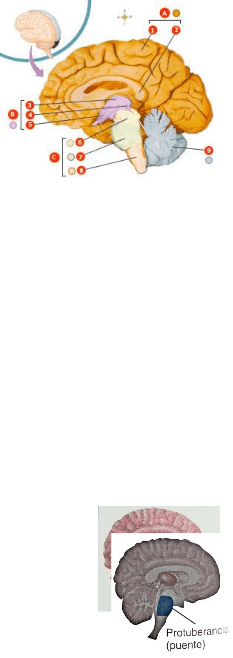 y se apoya en el diencéfalo y el troncodel encéfalo.