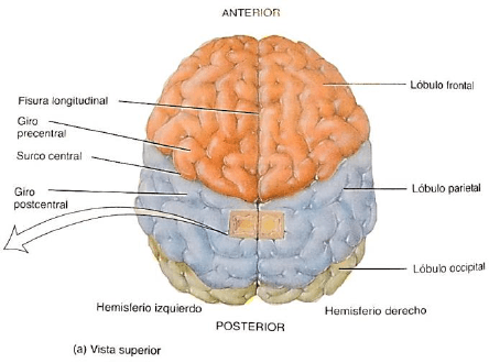 parietal, temporal y occipital. El lóbulofrontal está separado del lóbulo parietal