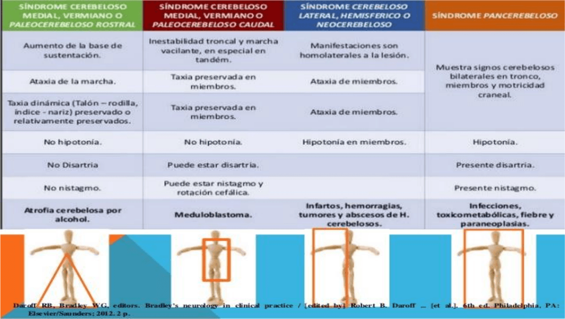 • Postura y marcha atáxica: aumento de la base de sustentación mediante la separación de los MMII y los