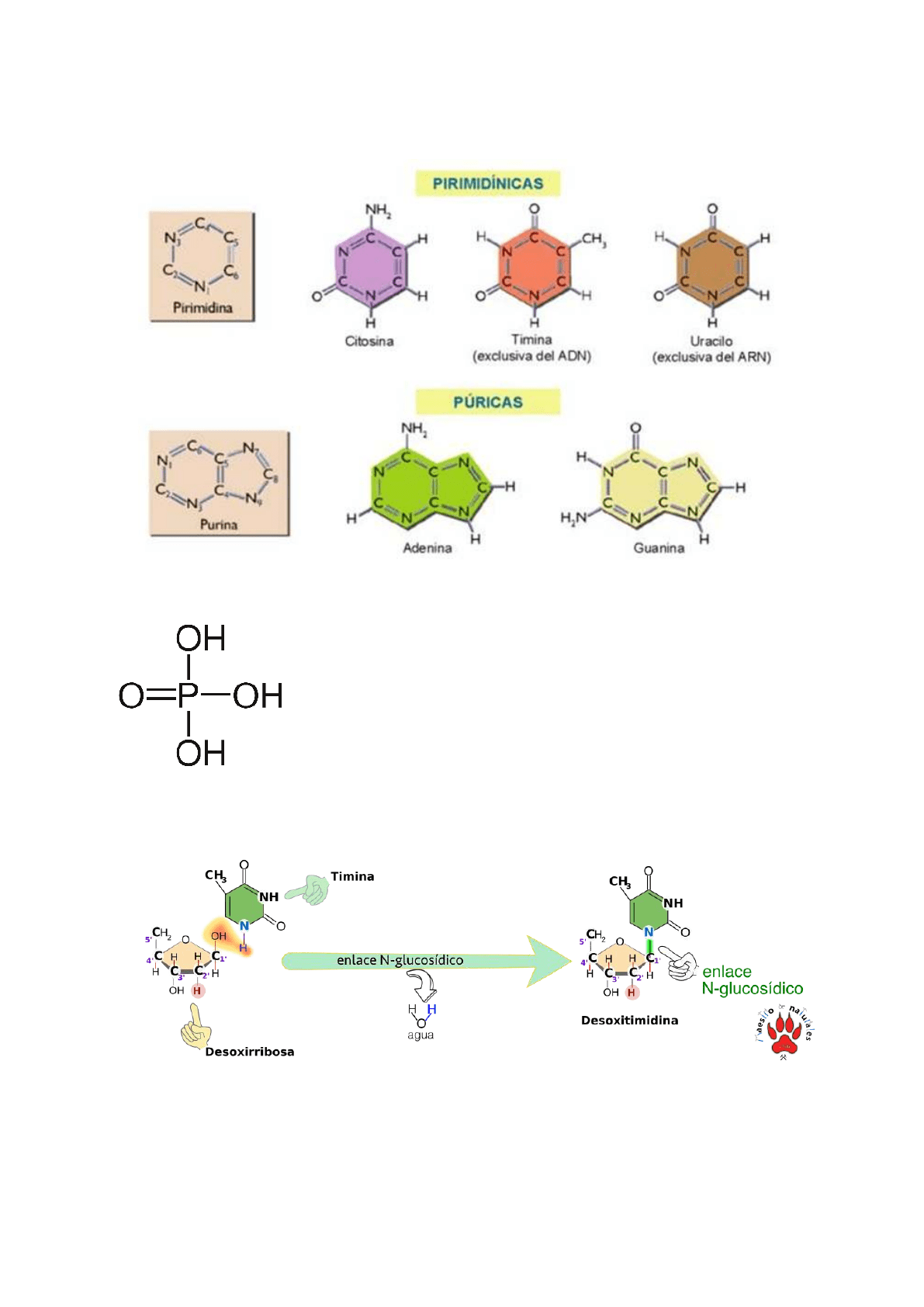en el ADN). Estos a su vez se forman por la unión de un grupo fosfato, una ribosa
