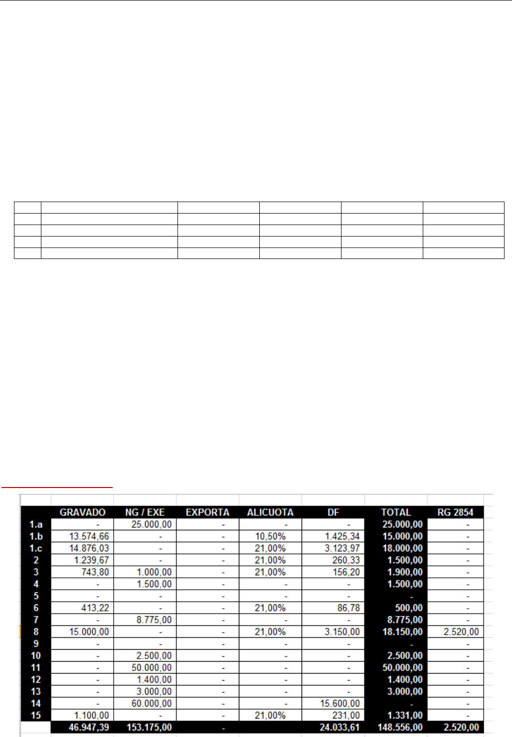 60.000,00 (El 20 % corresponde al terreno y el 80 % a la obra). Crédito Fiscal facturado en la