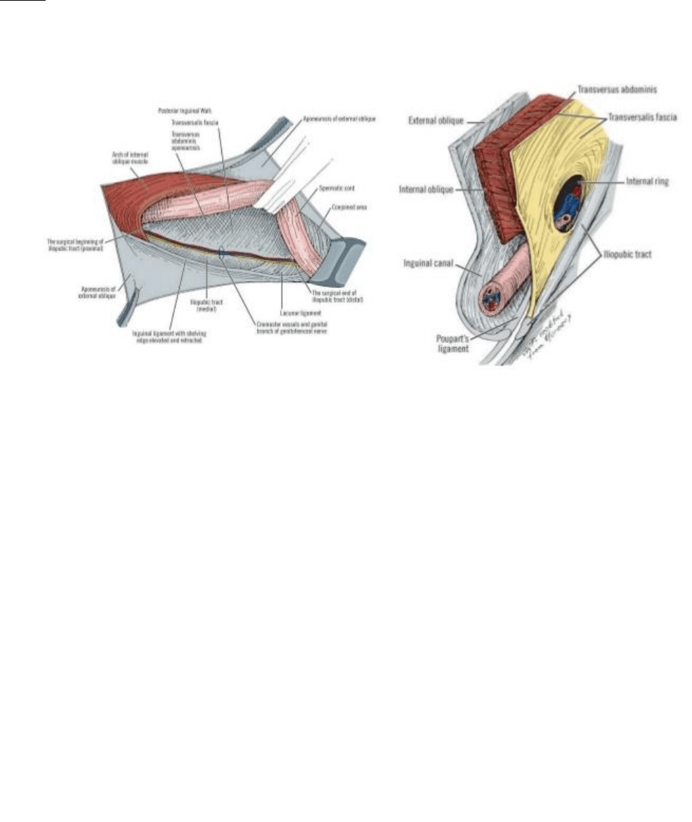 bastante engrosado. Une la espina iliaca AS con la sínfisis del pubis. Así queda delimitado que por encima del ligamento inguinal es la