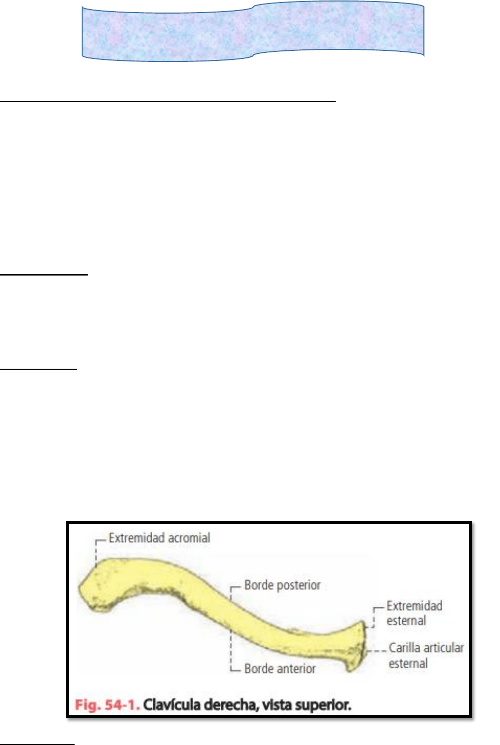 un borde medial, más delgado, que presenta la carilla articular para la clavícula