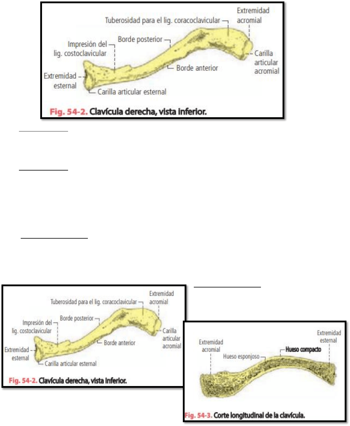Estructura La clavícula posee una estructura semejante a la de un hueso plano. Carece de canal