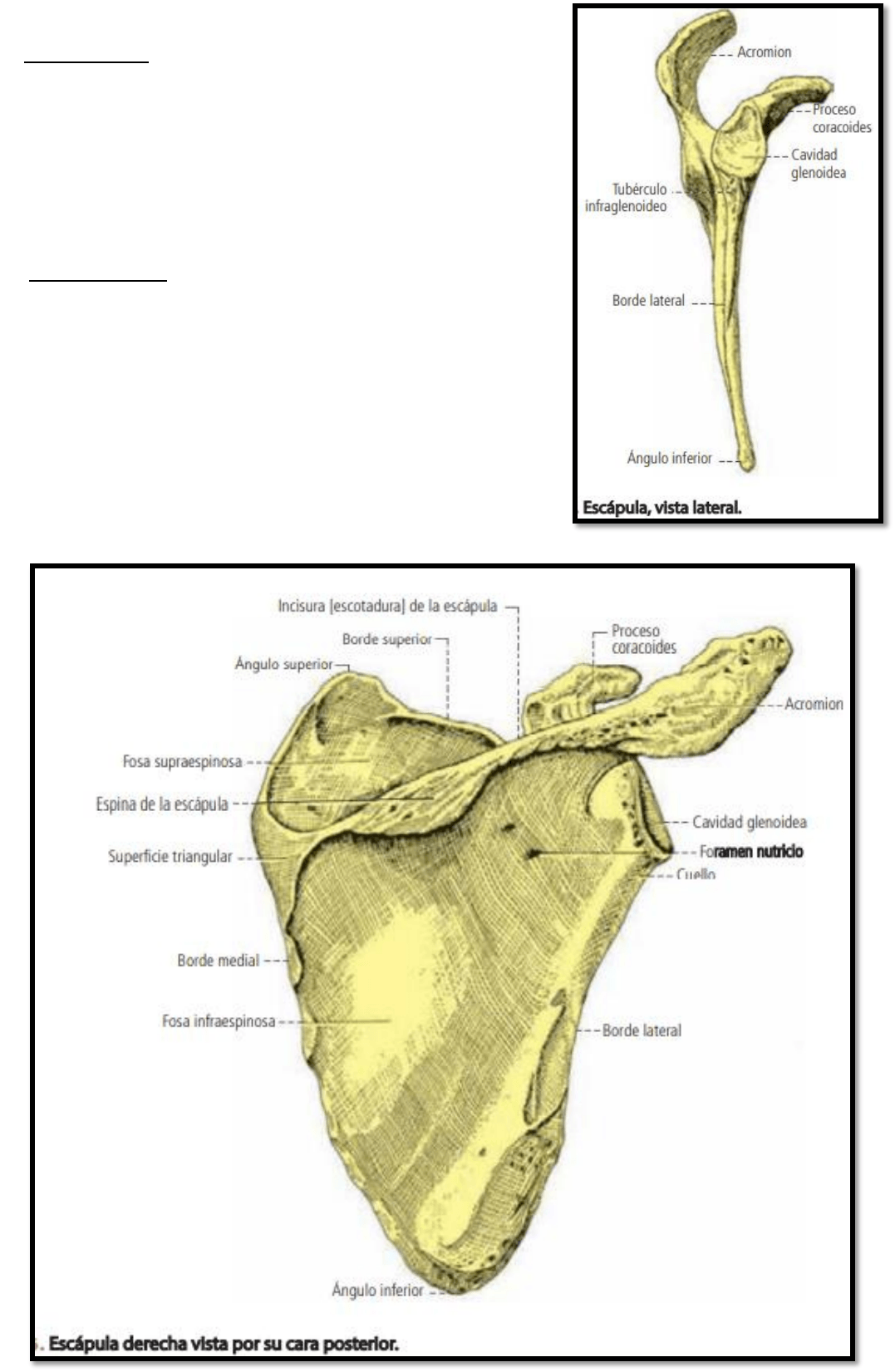 del hueso, para terminar en una amplia saliente en forma de paleta: el acromion.