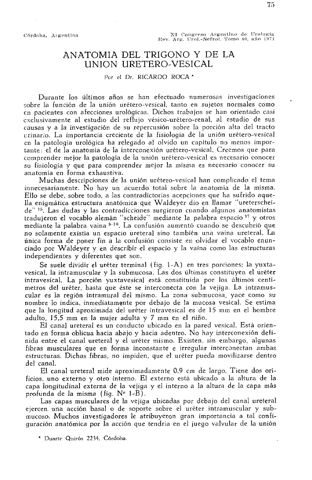 tante: el de la anatomía de la interconexión urétero-vesical. Creemos que para