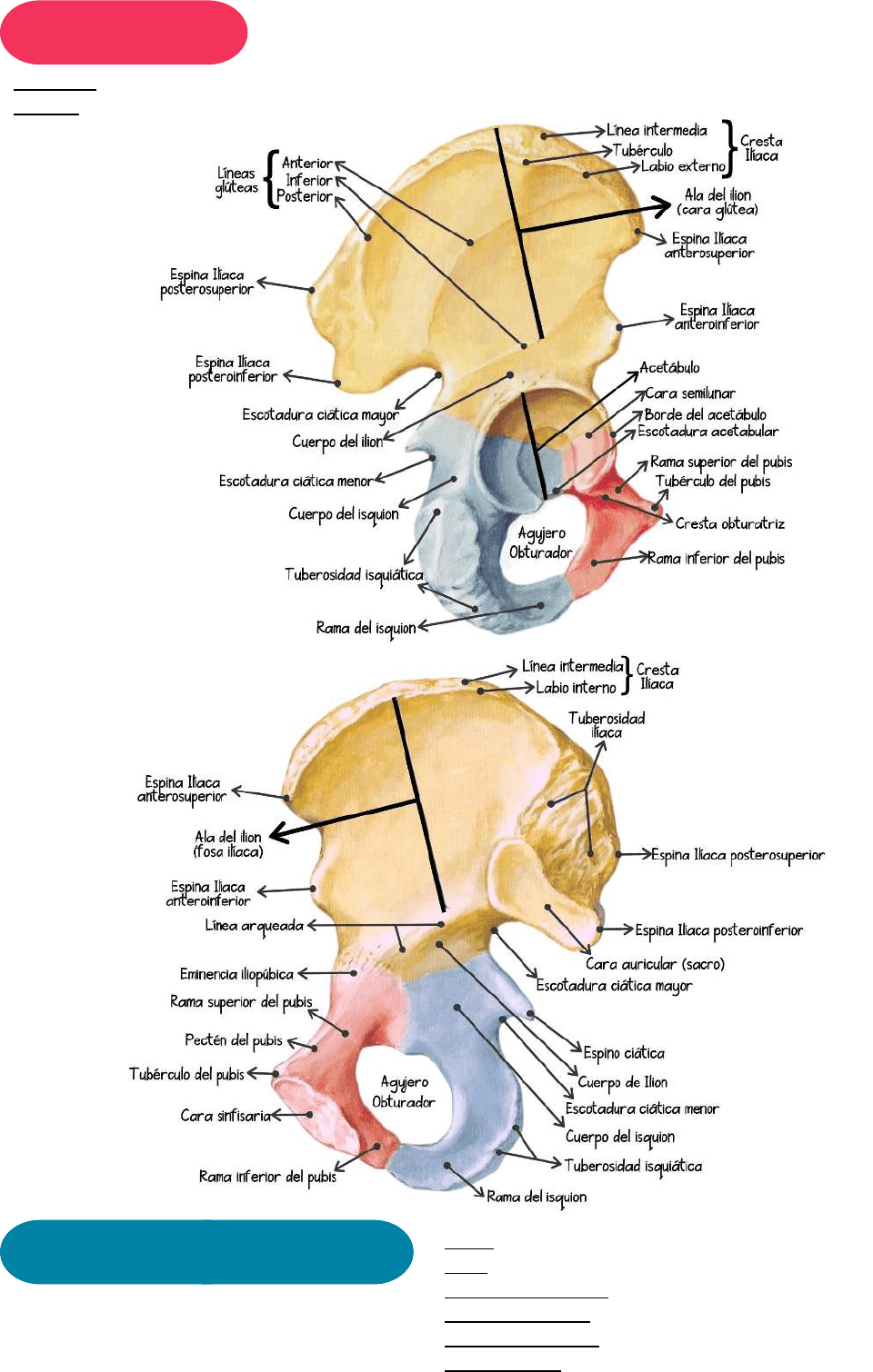 Cresta del pubis y sínfisis del pubis
