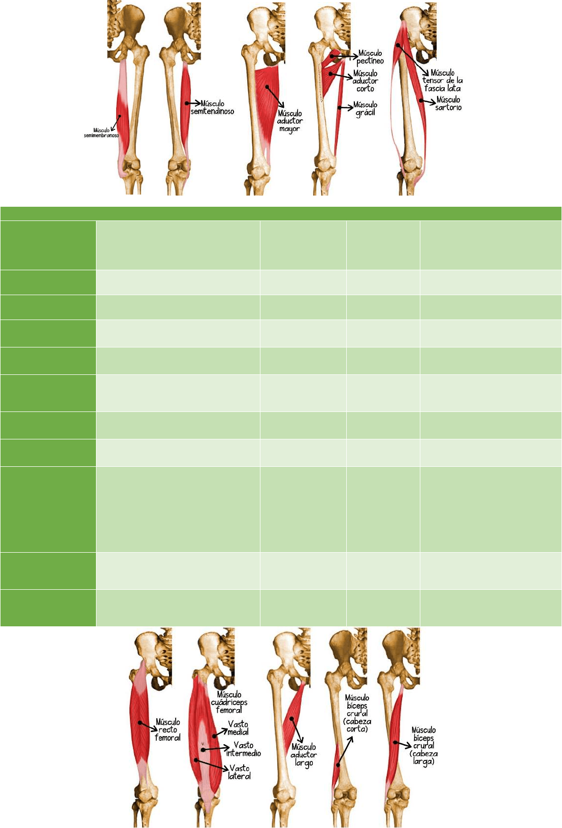 del muslo y flexión de la pierna