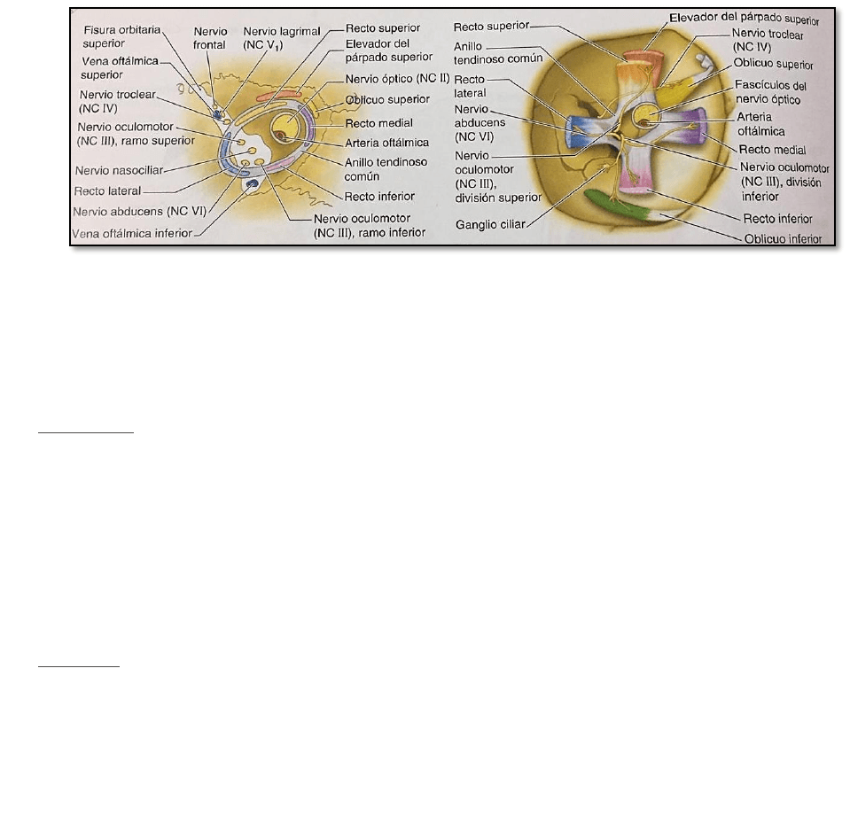 Observen en la imagen derecha como cada nervio va a inervar a cada músculo del ojo.