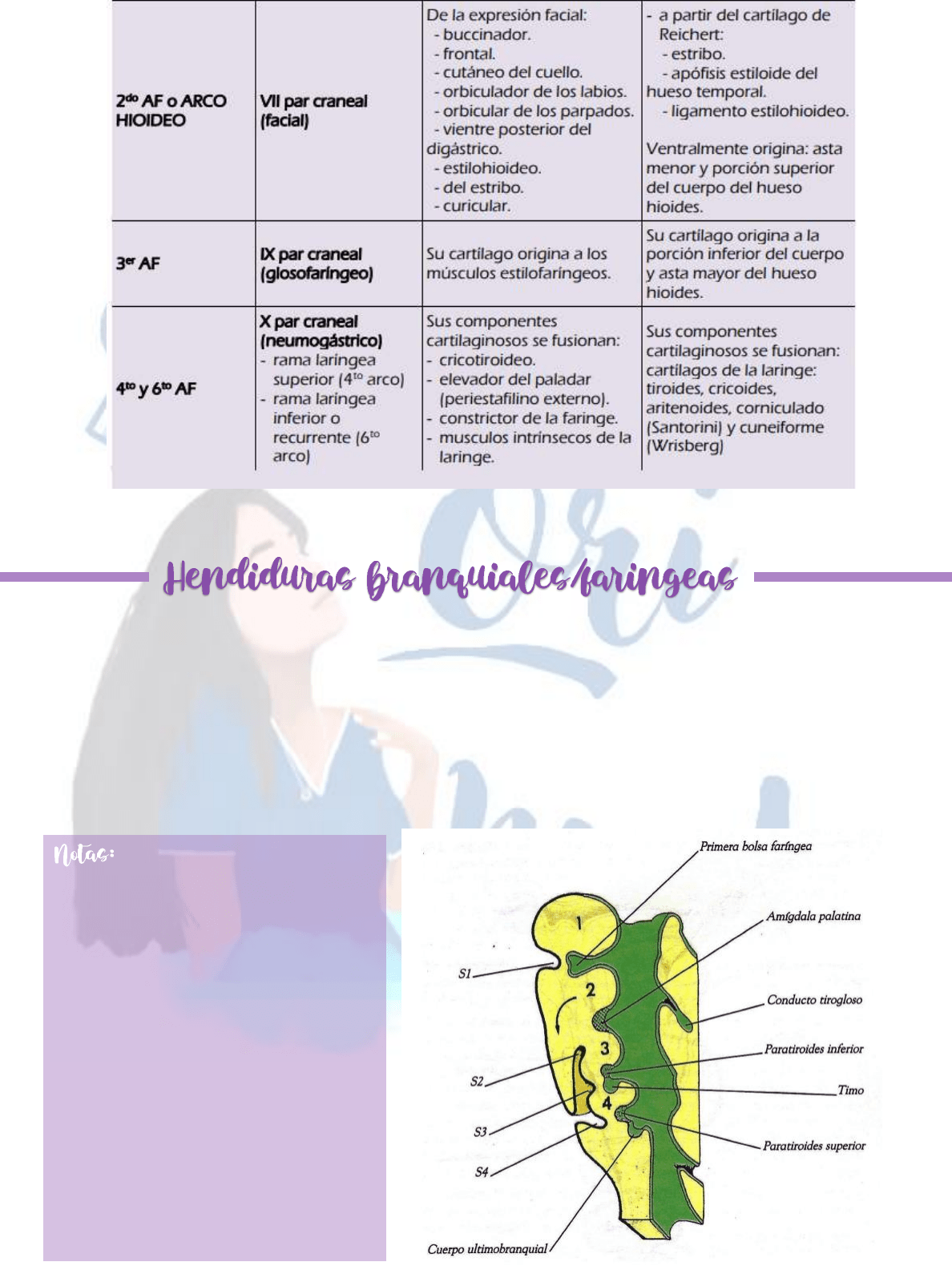 Cada arco tiene su propio componente: músculo, nervio, cartílago y arteria.