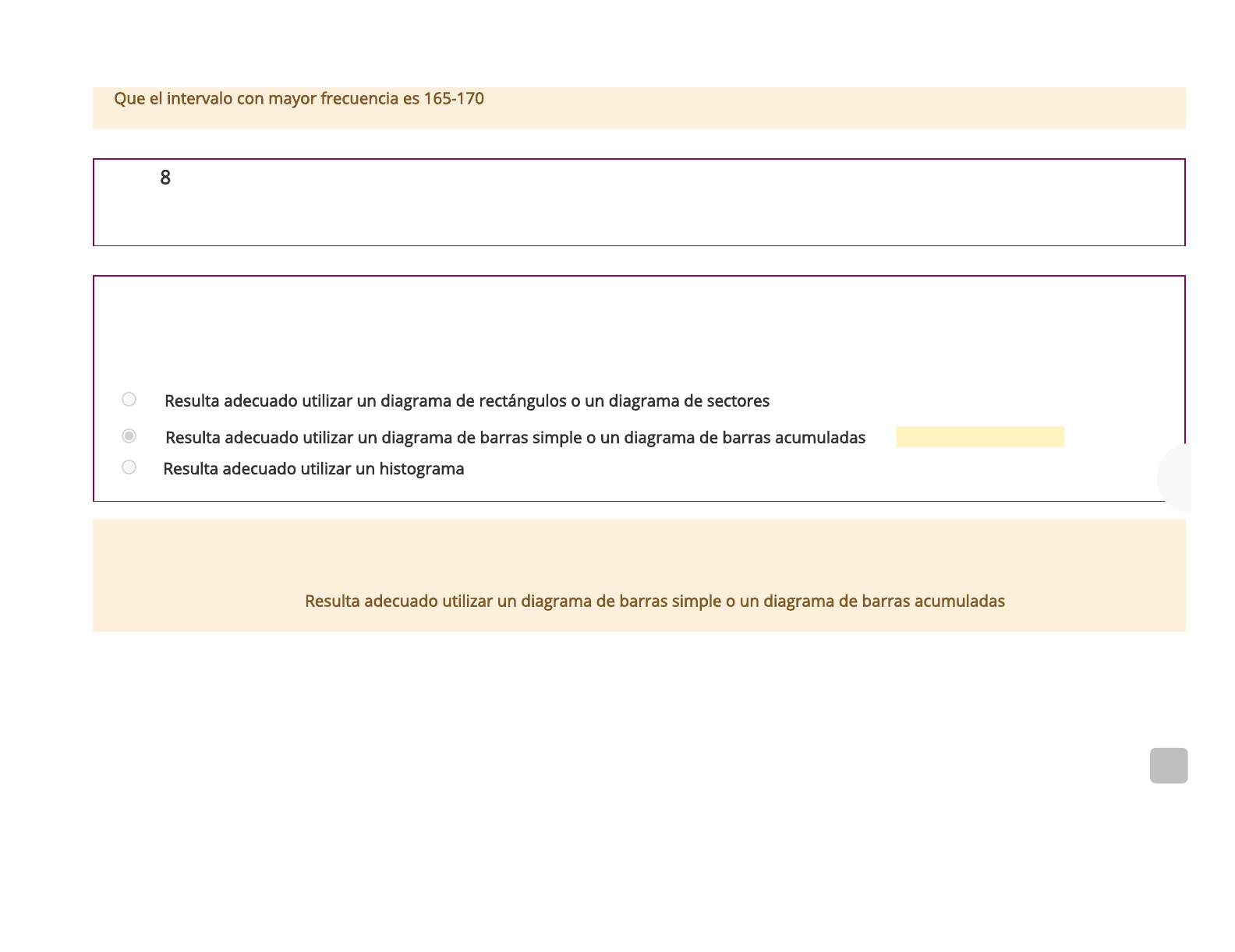 b. Resulta adecuado utilizar un diagrama de barras simple o un diagrama de barras acumuladas Respuesta Correcta