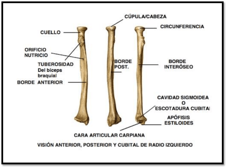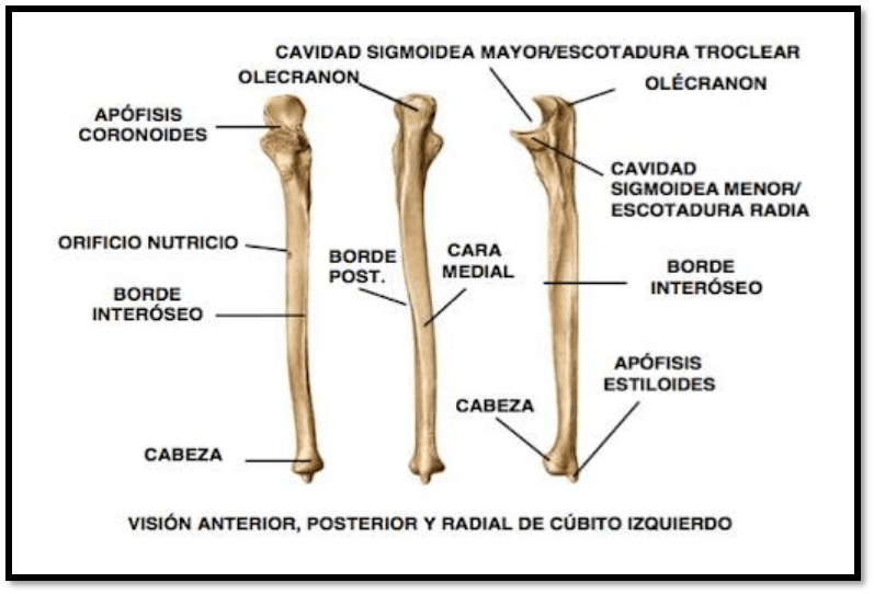 cavidad sigmoidea mayor) y una cara posterior con rugosidades para el