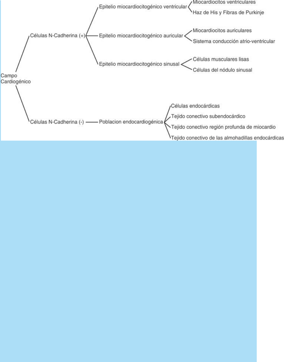 dos subpoblaciones: a) endocardiogénica o N-cadherina (-