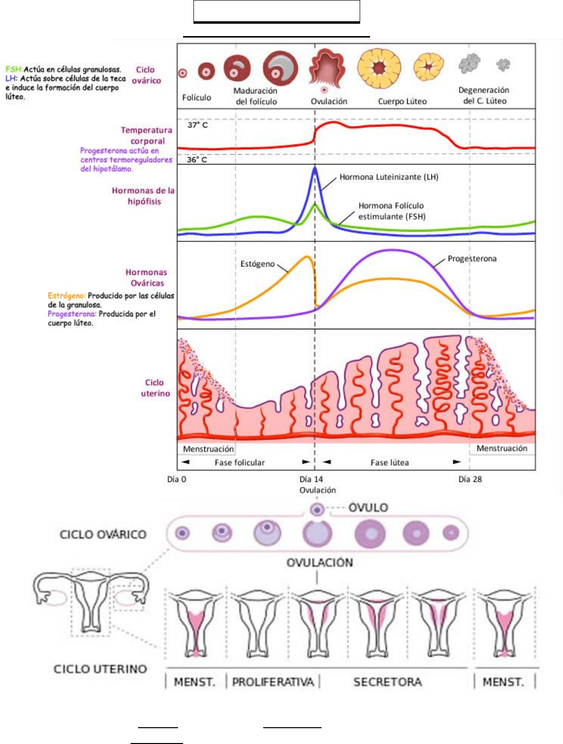 (alrededor del día 12) con la hipófisis, que eleva los niveles de LH. Este ascenso culmina 24-36 horas preovulación