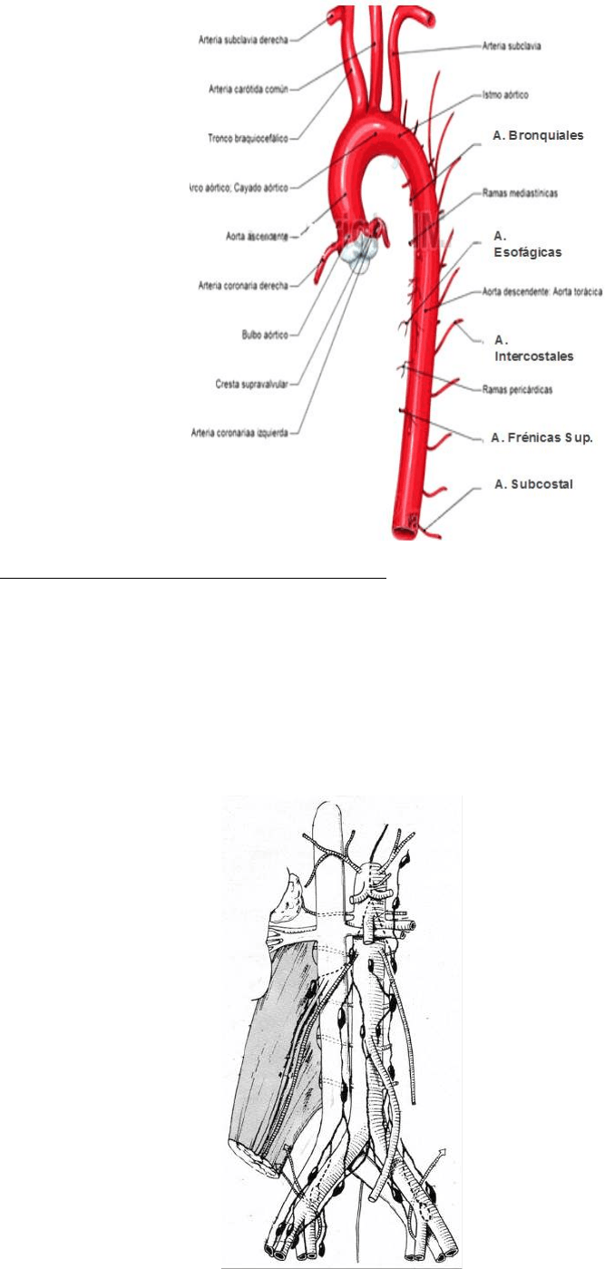 derecha de los cuerpos vertebrales torácicos hasta aproximadamente de T4, donde genera una