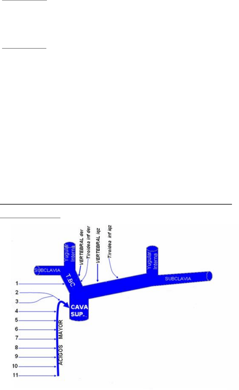 (formada por la anastomosis de la 2da y 3er vena intercostal derecha) y las venas hemiácigos