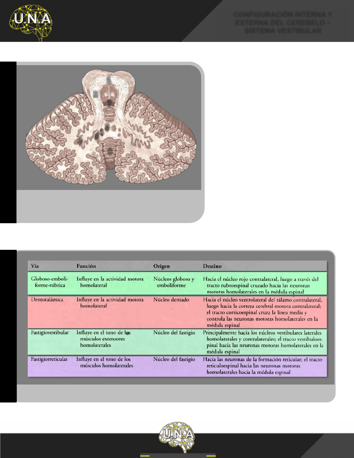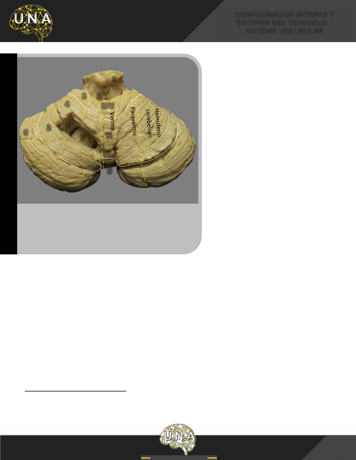 extiende por los lóbulos anterior, posterior e incluye al nódulo. La zona intermedia (paravermiana) es