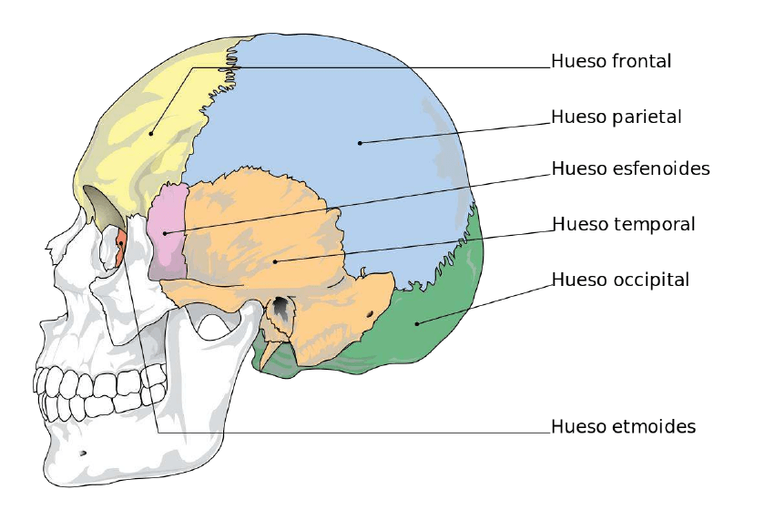 entre el hueso frontal y el hueso parietal. En caso de inflamación de las