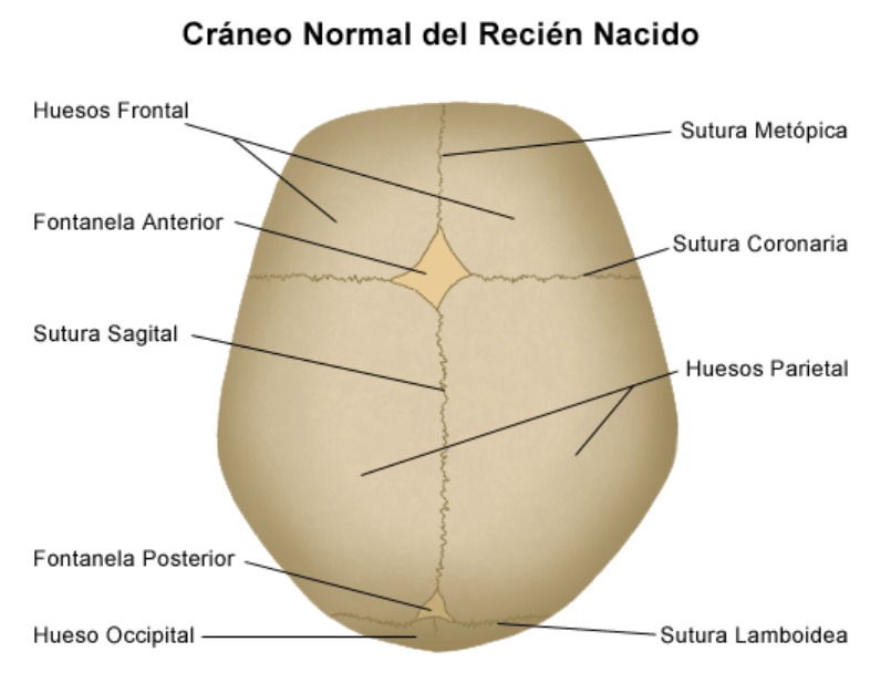 El esqueleto craneal del neonato tiene un total de cuatro fontanelas. La