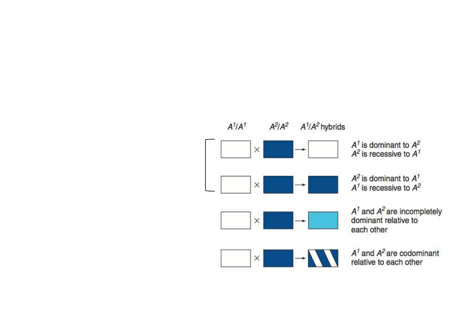 Resumen de las diferentes interacciones alélicas