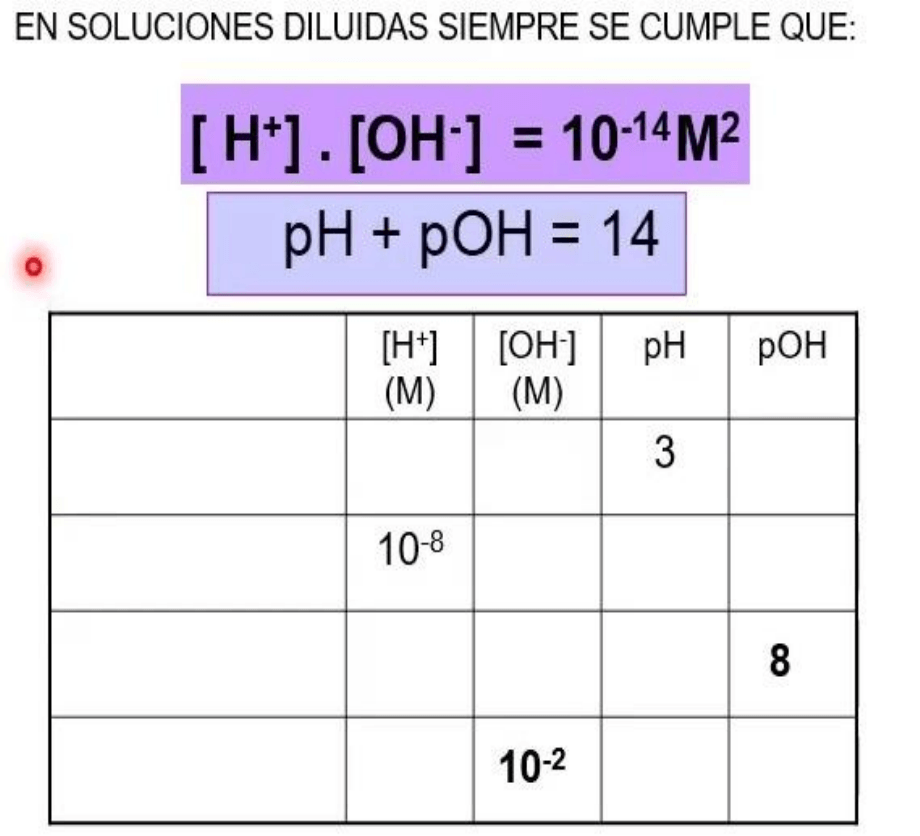 a la menos 14, entonces en una solución acida, la concentración de protones es mayor