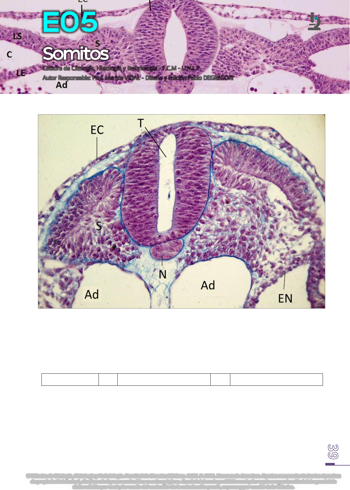PERÍODO SOMÍTICO: ENDODERMO (EN), AORTAS DORSALES (Ad), NOTOCORDA (N), SOMITO