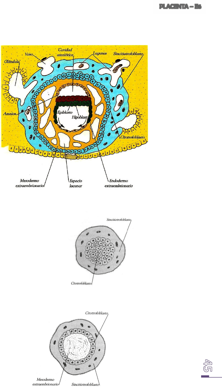 extraembrionarios: 1. el corion frondoso, anexo embrionario originado a partir del Trofoblasto y 2. la decidua