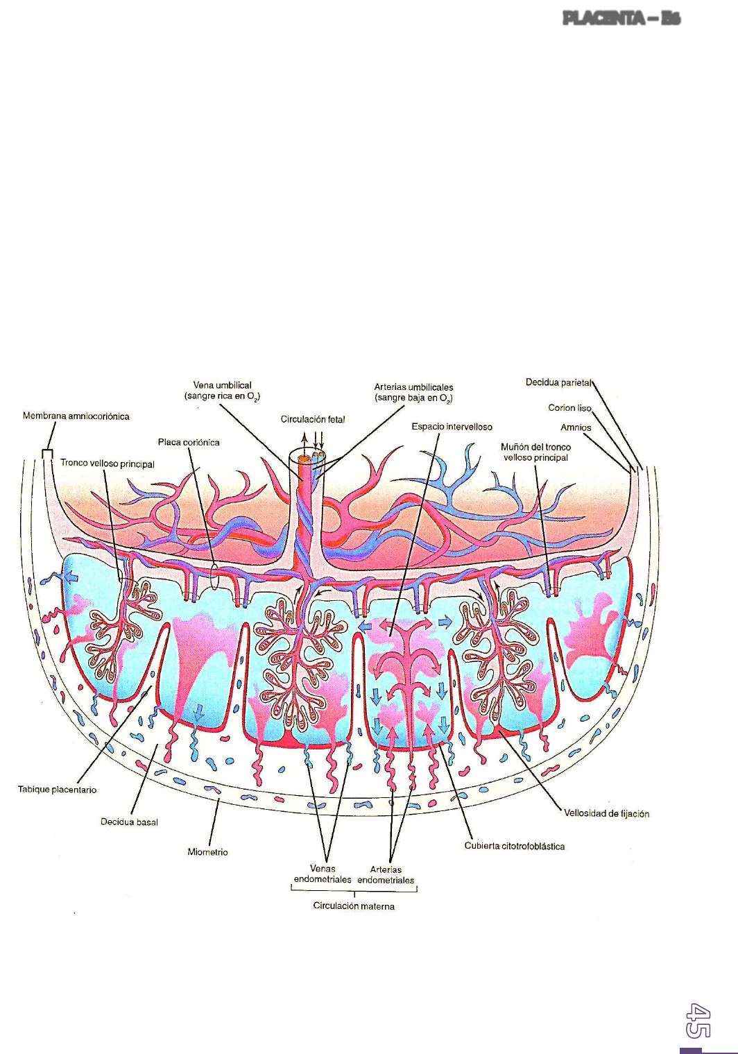placa decidual (cara materna), respectivamente. Esta estrecha relación materno-fetal permite el intercambio