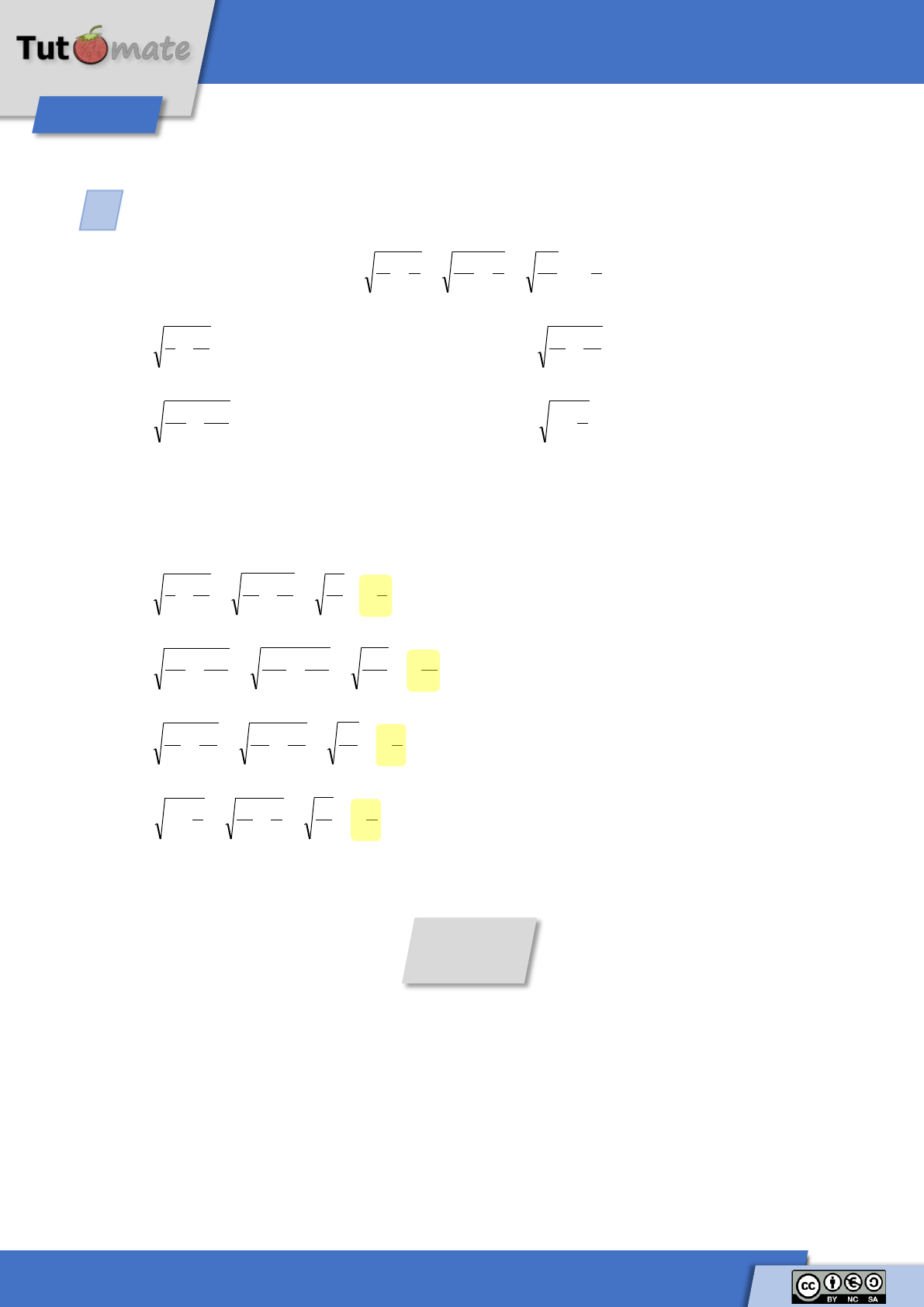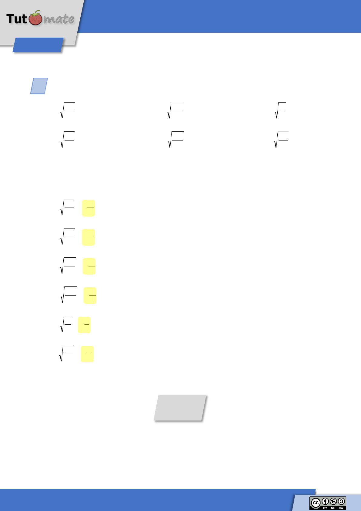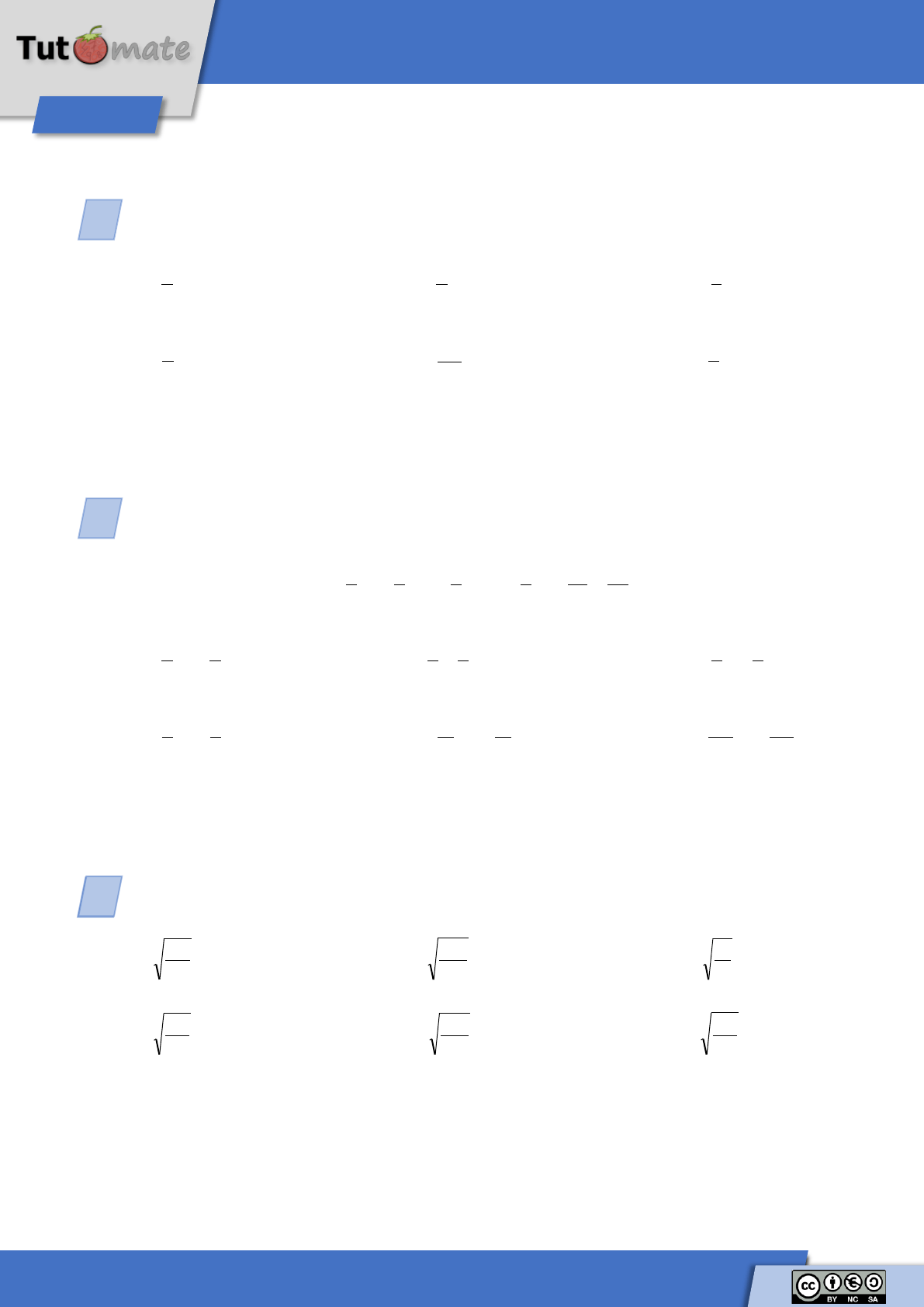 Calcula las siguientes raíces de fracciones: