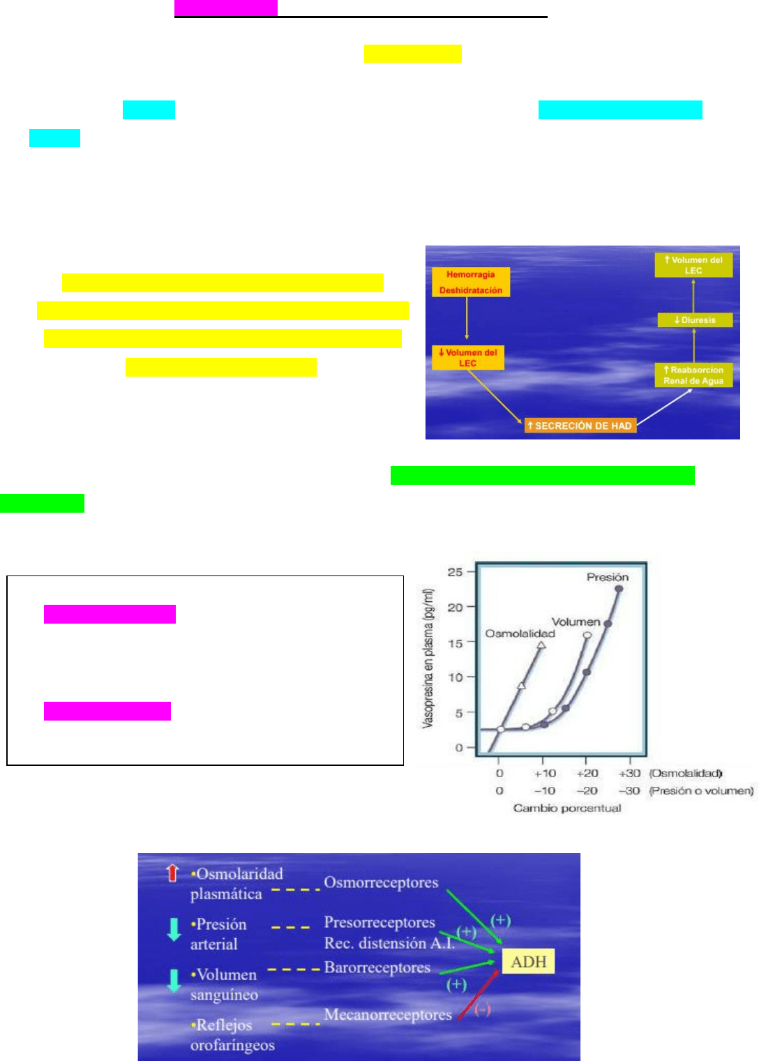 de agua. A su vez aumenta la liberación de ACTH en rta a la hipovolemia, con consiguiente aumento de