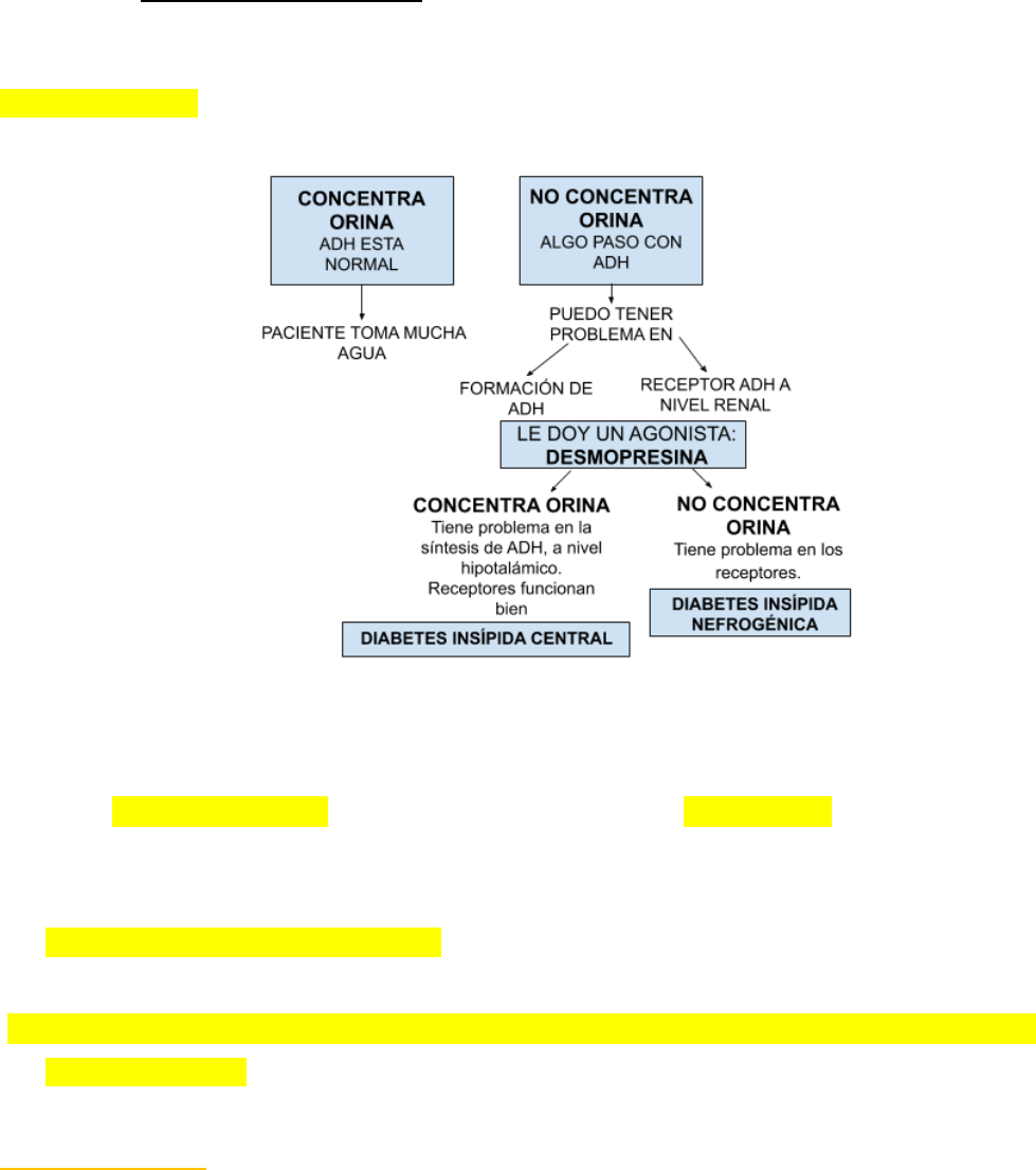 1. NO CONCENTRA ORINA: puede haber problemas en receptores o formación de ADH. Para eso aplico