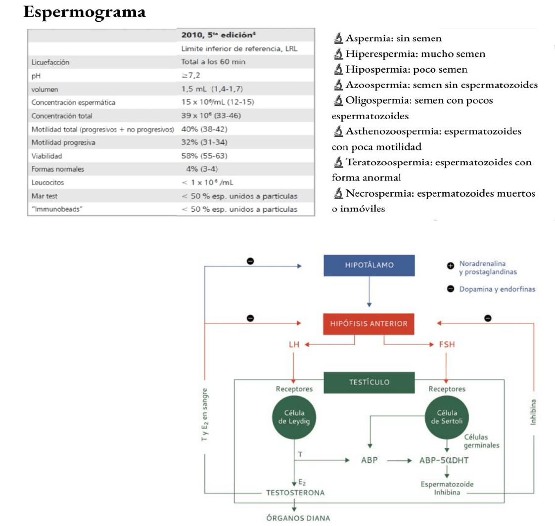 Estudio del eyaculado o semen. Es barato, sencillo y no invasivo. Sirve para medir capacidad del eje,