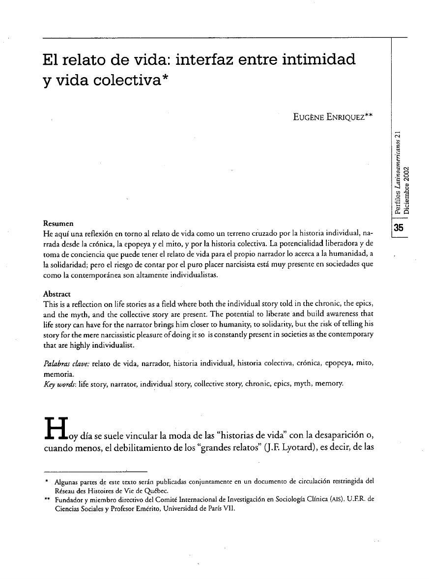 su etnia, de su nación), y cómo lo más particular que le sucede, lo más secreto, pue-