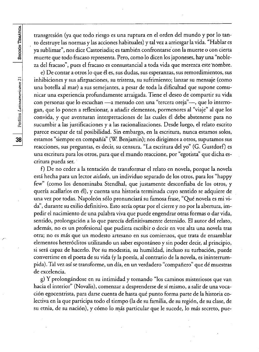 sucumbir a las justificaciones y a las racionalizaciones. Desde luego, el relato escrito