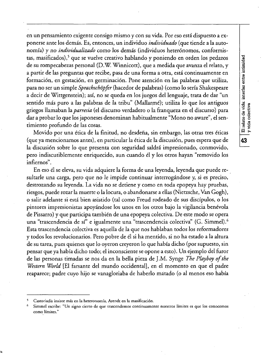 ya sublimar", nos dice Castoriadis; es también confrontarse con la muerte o con cierta