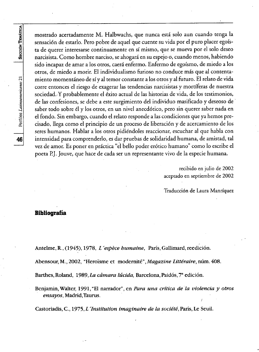 reacciones, sus preguntas, es decir, su censura. "La escritura del yo"