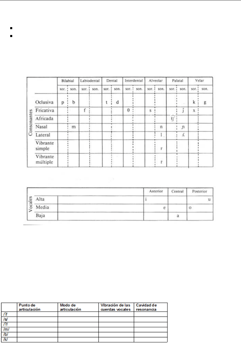 del de la Fonética), unidades (fonema, rasgos distintivos y sílaba), combinaciones y procesos