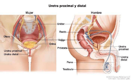 forma parte del sistema reproductivo masculino) rodea el cuello inferior, lugar donde la vejiga converge con