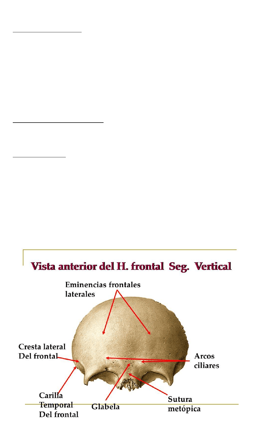 • Porción vertical o frontal, en la línea media se encuentran vestigios de la sutura metópica.