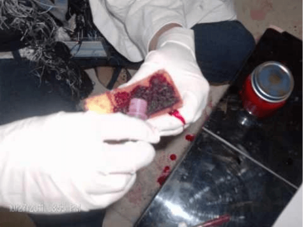 delitos contra las personas, manchas sospechosas de sangre. Su aspecto macroscópico induce
