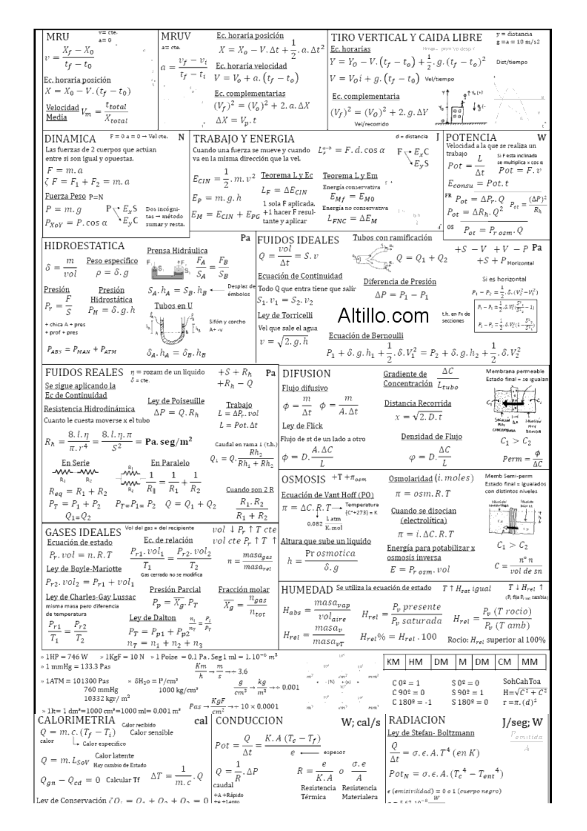 Hoja de Fórmulas | Biofísica (2018) | CBC | UBA