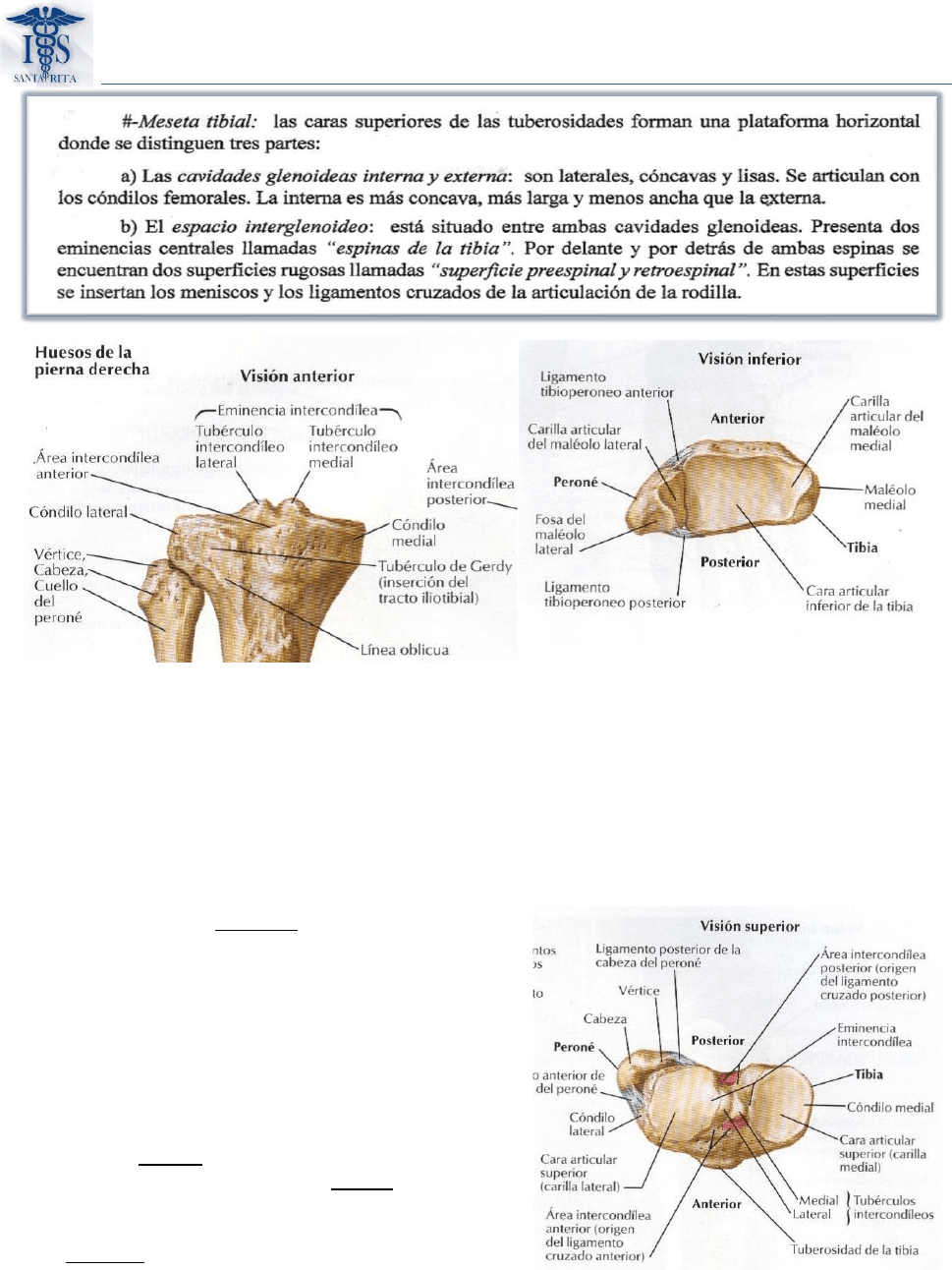 • Inferior: presenta tres tuberosidades: una anterior y dos posteriores.