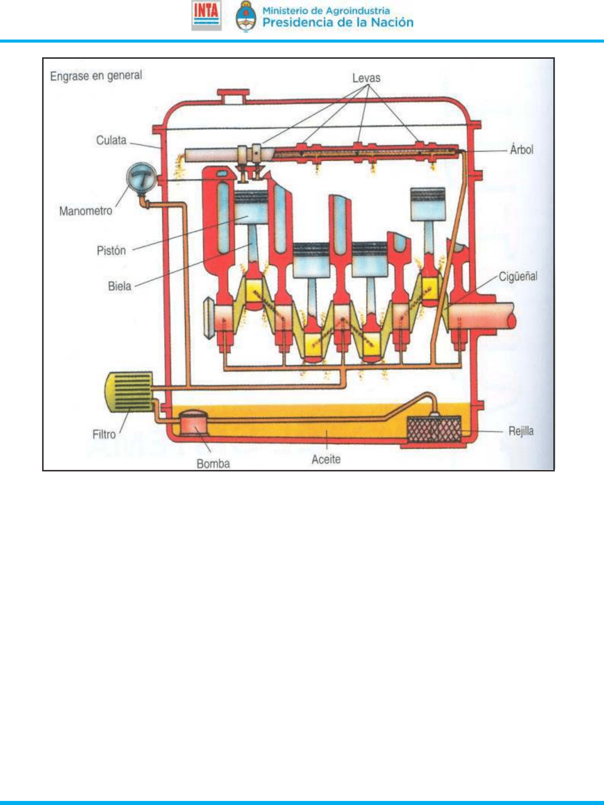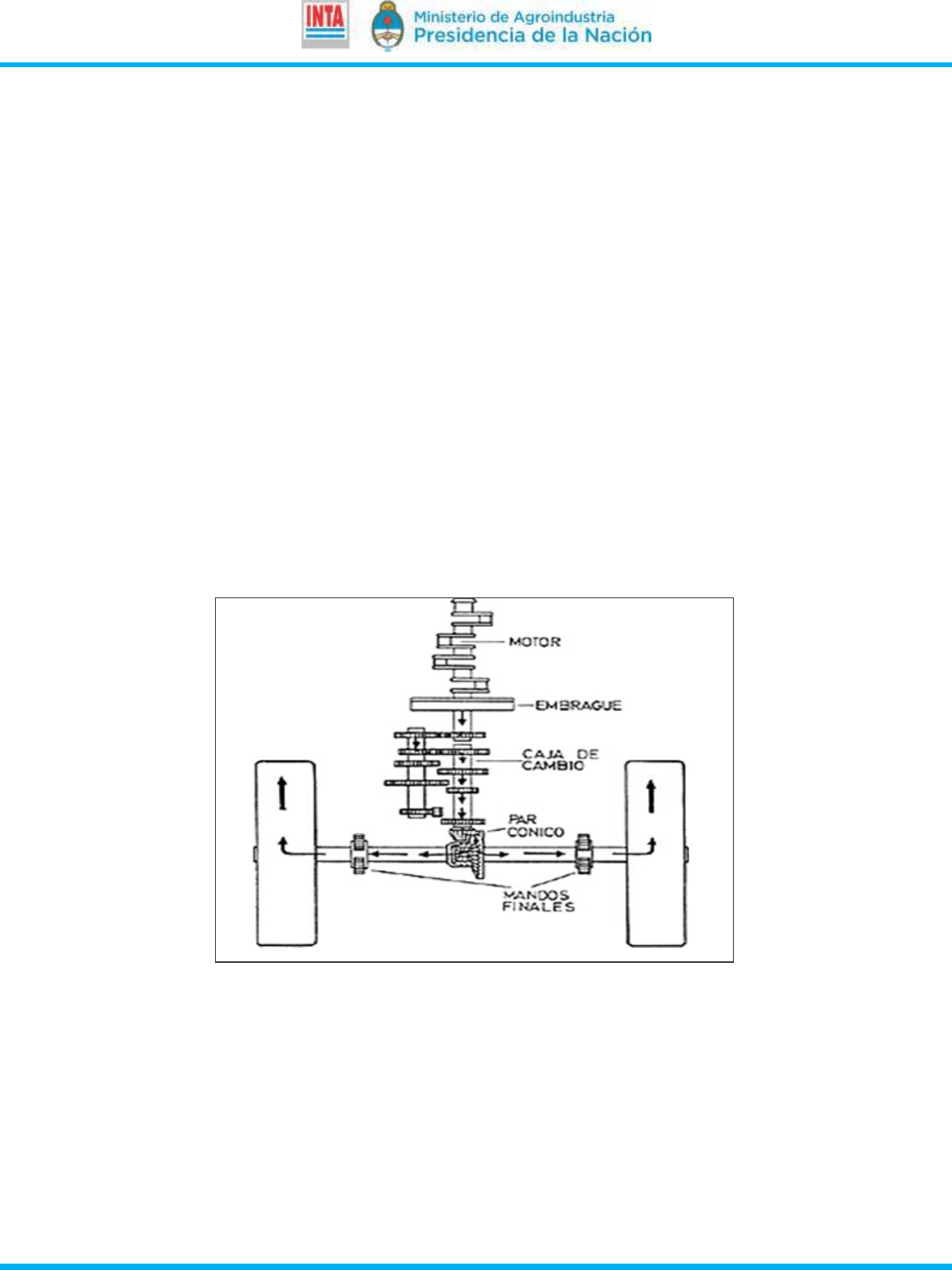 embrague, de aquí a la caja de cambios, luego al diferencial, pasando a las ruedas motrices y la toma de fuerza