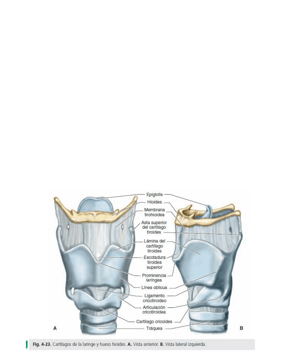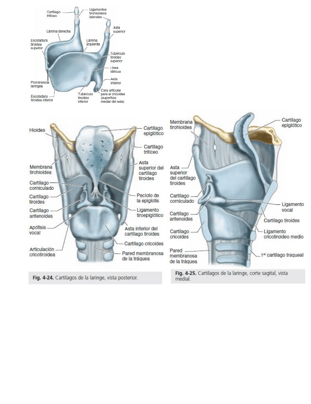 El cartílago tiroides es el cartílago más grande. Su borde superior está a la altura de C4.