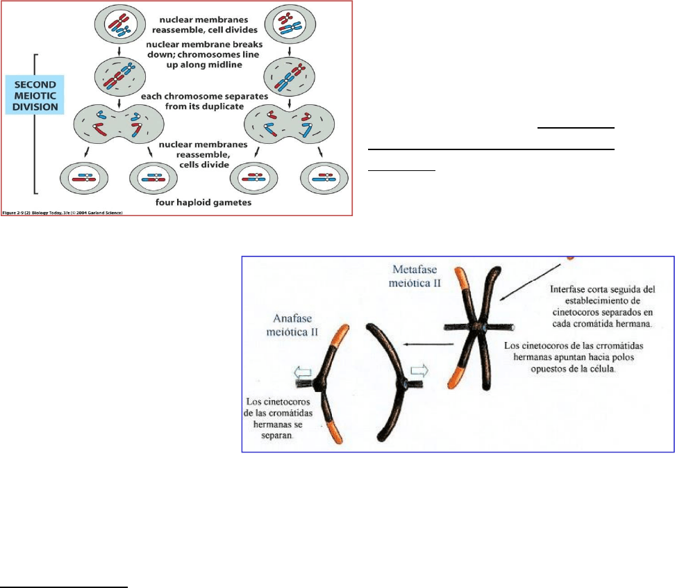más parecida a la mitosis, separando las cromátidas hermanas del cromosoma resultando 4 células