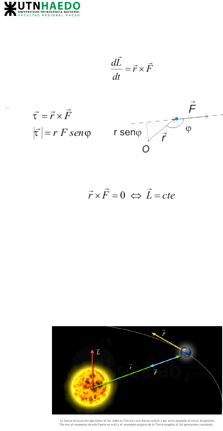 de conservación del momento angular y suponiendo que es la única fuerza externa que actúa, la Tierra