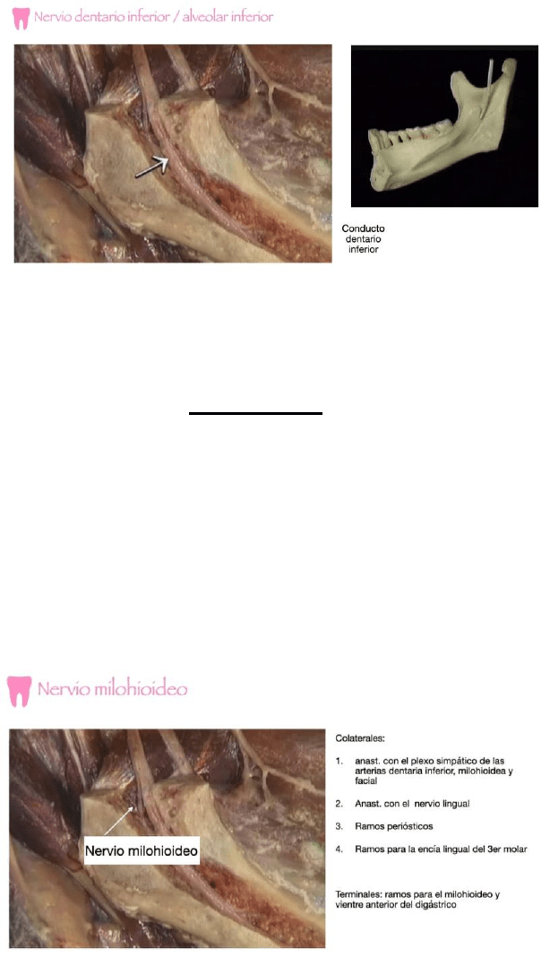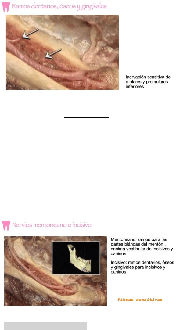 dentario inferior hasta la zona de los premolares donde emite sus dos ramas terminales.